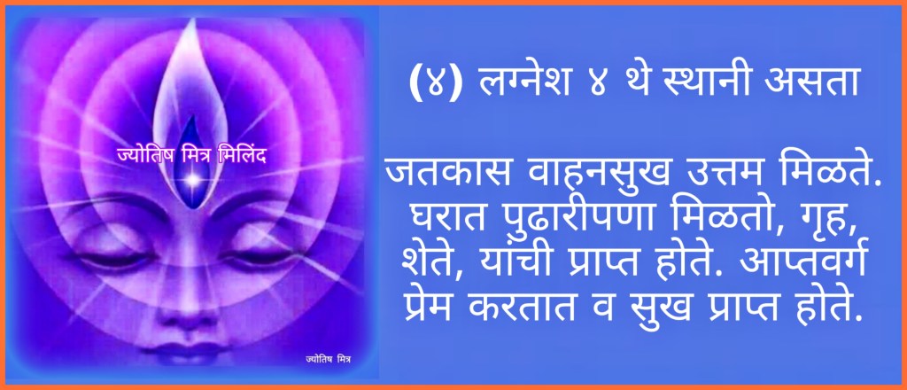 (४) लग्नेश ४ थे स्थानी असता