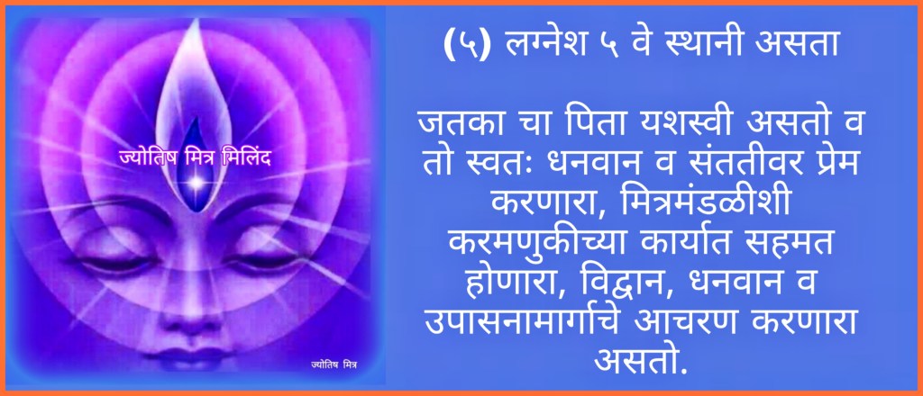 (५) लग्नेश ५ वे स्थानी असता