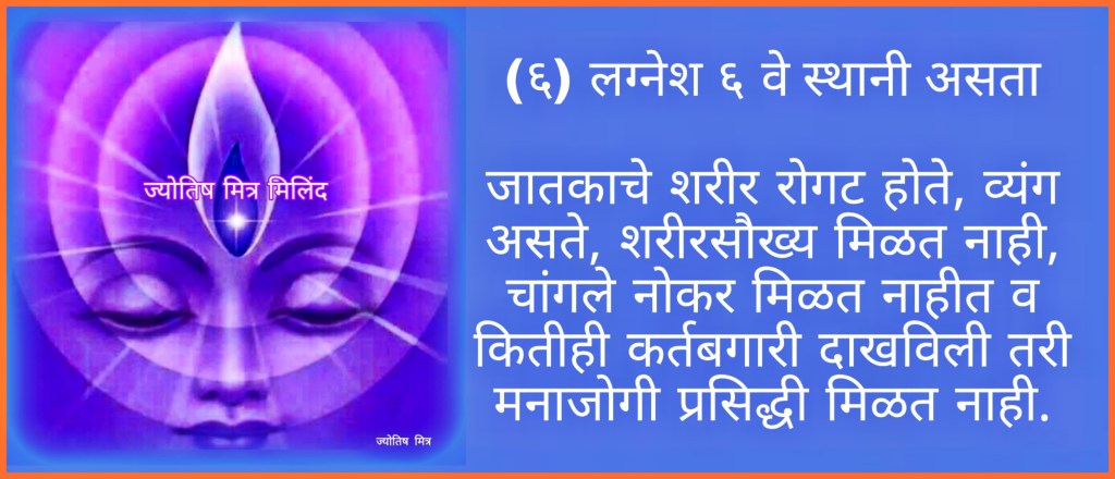 (६) लग्नेश ६ वे स्थानी असता