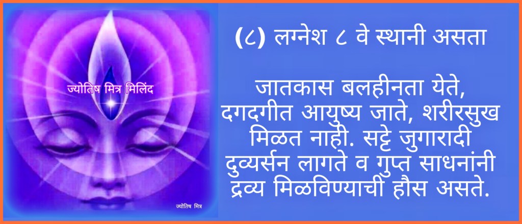 (८) लग्नेश ८ वे स्थानी असता