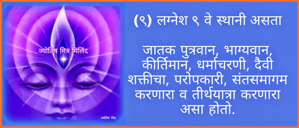 (९) लग्नेश ९ वे स्थानी असता