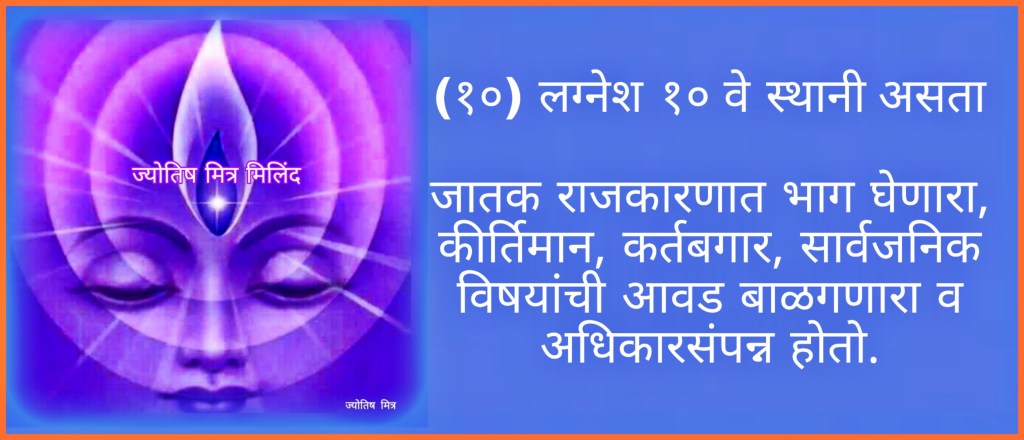 (१०) लग्नेश १० वे स्थानी असता