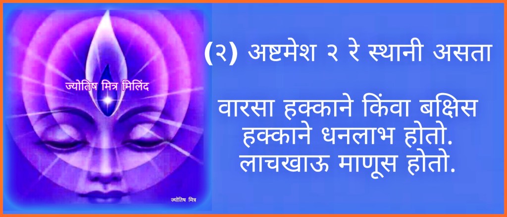(२) अष्टमेश २ रे स्थानी असता