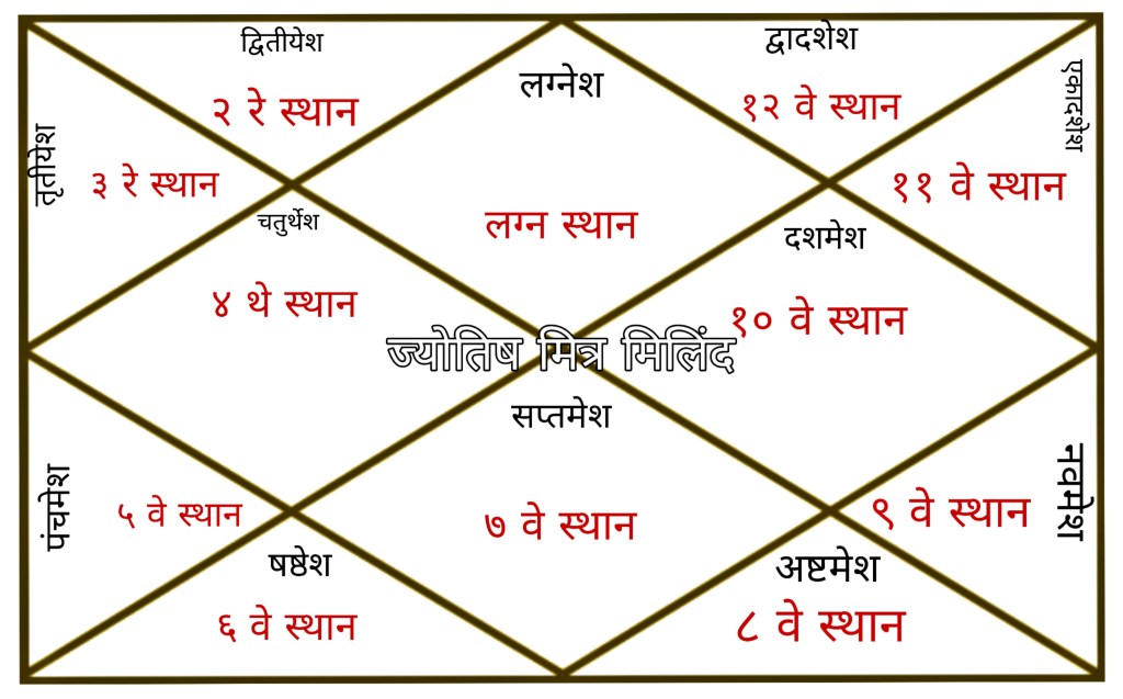 उदा. लग्नेश च्या जागी ९ आकडा असेल तर ९ म्हणजे धनु रास जी गुरूच्या मालकीची आहे तो गुरू कोणत्या स्थानात आहे ते पाहावे व त्याप्रमाणे फळ पहावे.