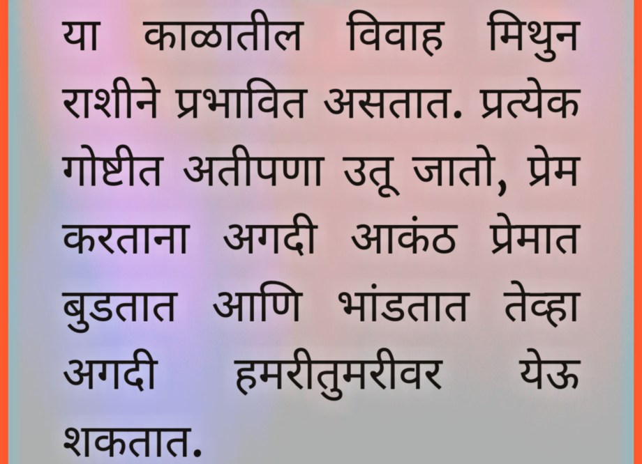 १४ जून ते १३ जुलै या दरम्यान झालेला विवाह Written by jyotish mitra milind ज्योतिष मित्र मिलिंद Share this: Click to share on X (Opens in new window) X Click to share on Facebook (Opens in new window) Facebook More Click to email a link to a friend (Opens in new window) Email Like Loading... Related Leave a comment Cancel reply Δ