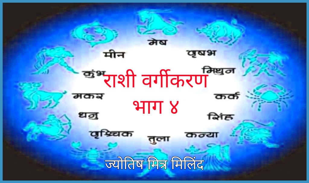 राशी वर्गीकरण भाग १, २ व ३ मध्ये आपण राशींचे १३ विभागात केलेले वर्गीकरण व सकारात्मक व नकारात्मक राशि, उतरी व दक्षिणी, विषुवीय, अयन वृत्तिय राशि,अग्नी, पृथ्वी, वायु, जल राशि, चर, स्थिर व द्विस्वभाव राशी या बद्दल जाणून घेतले.