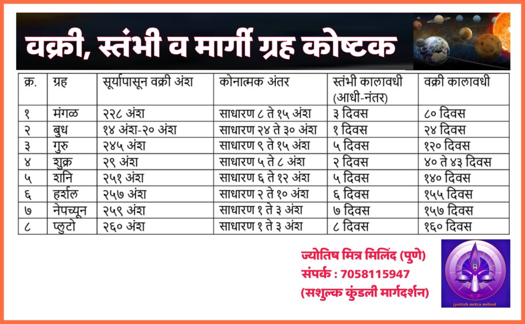 विषय : ग्रह गती आणि वक्री, स्तंभी, मार्गी ग्रह