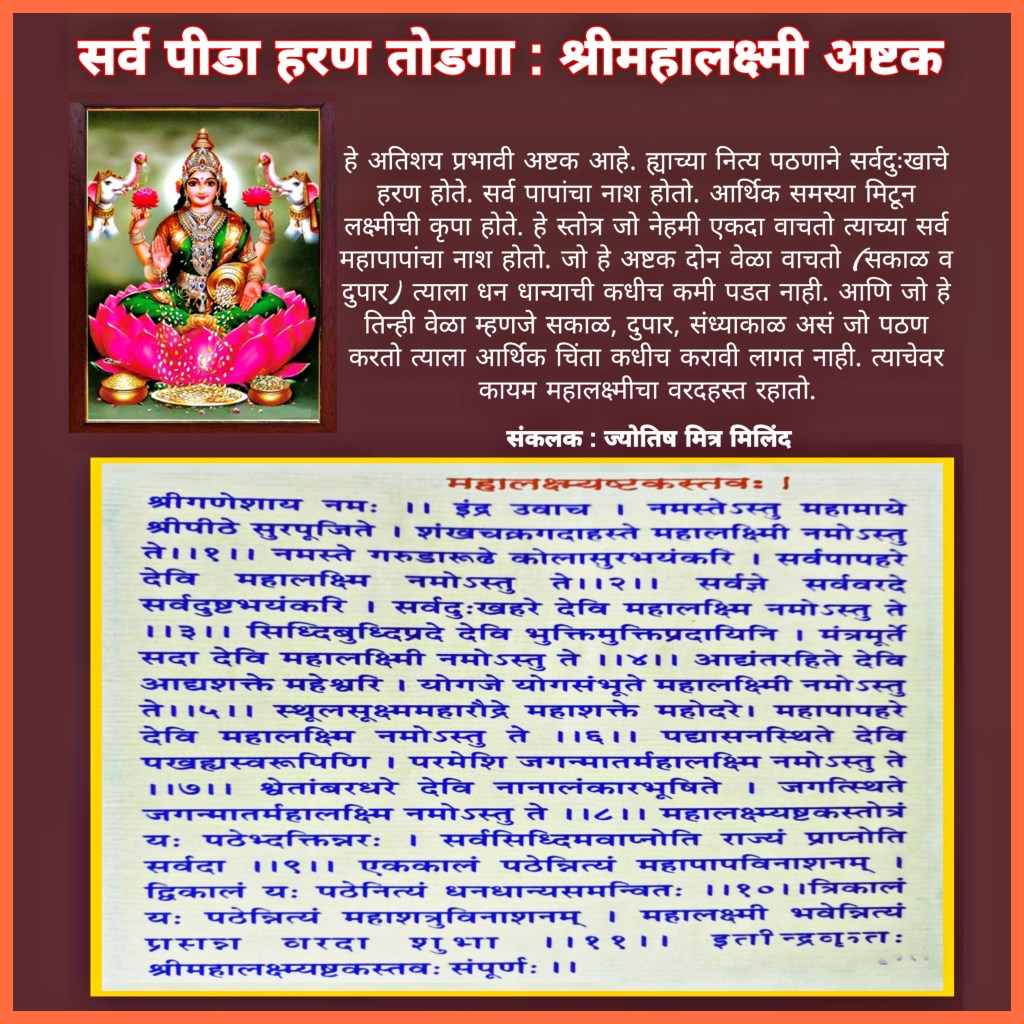 सर्व पीडा हरण तोडगा : श्रीमहालक्ष्मी अष्टक Written by jyotish mitra milind ज्योतिष मित्र मिलिंद (पुणे)संपर्क : 7058115947(सशुल्क कुंडली मार्गदर्शन) Share this: Click to share on X (Opens in new window) X Click to share on Facebook (Opens in new window) Facebook More Click to email a link to a friend (Opens in new window) Email Like Loading... Related Leave a comment Cancel reply Δ