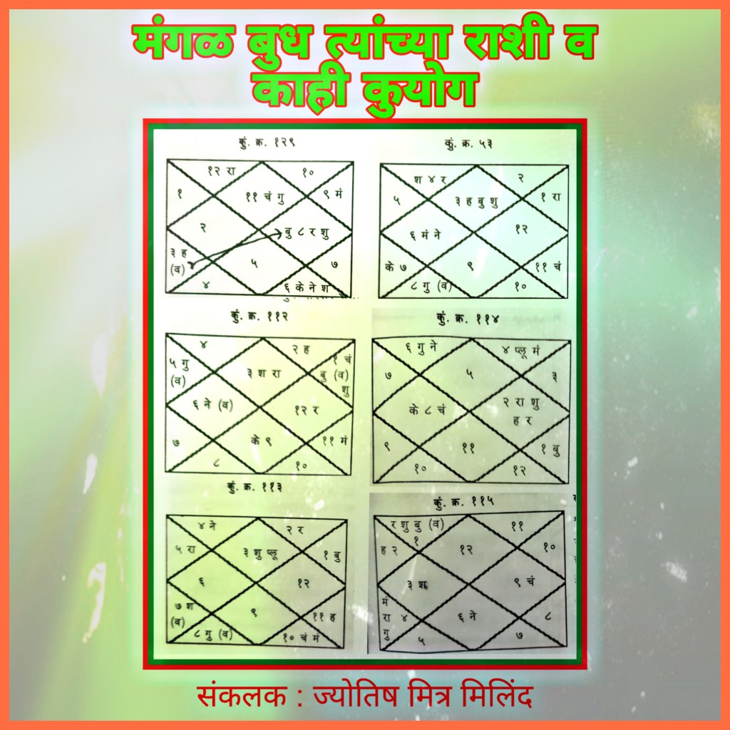 विषय : मंगळ बुध त्यांच्या राशी व काही कुयोग