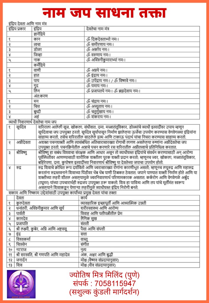 आज आपण इंद्रियांचे कार्य सुधारण्यासाठी विशिष्ट इंद्रिय देवता आणि नाम जप साधना या विषयाची माहिती घेणार आहोत.