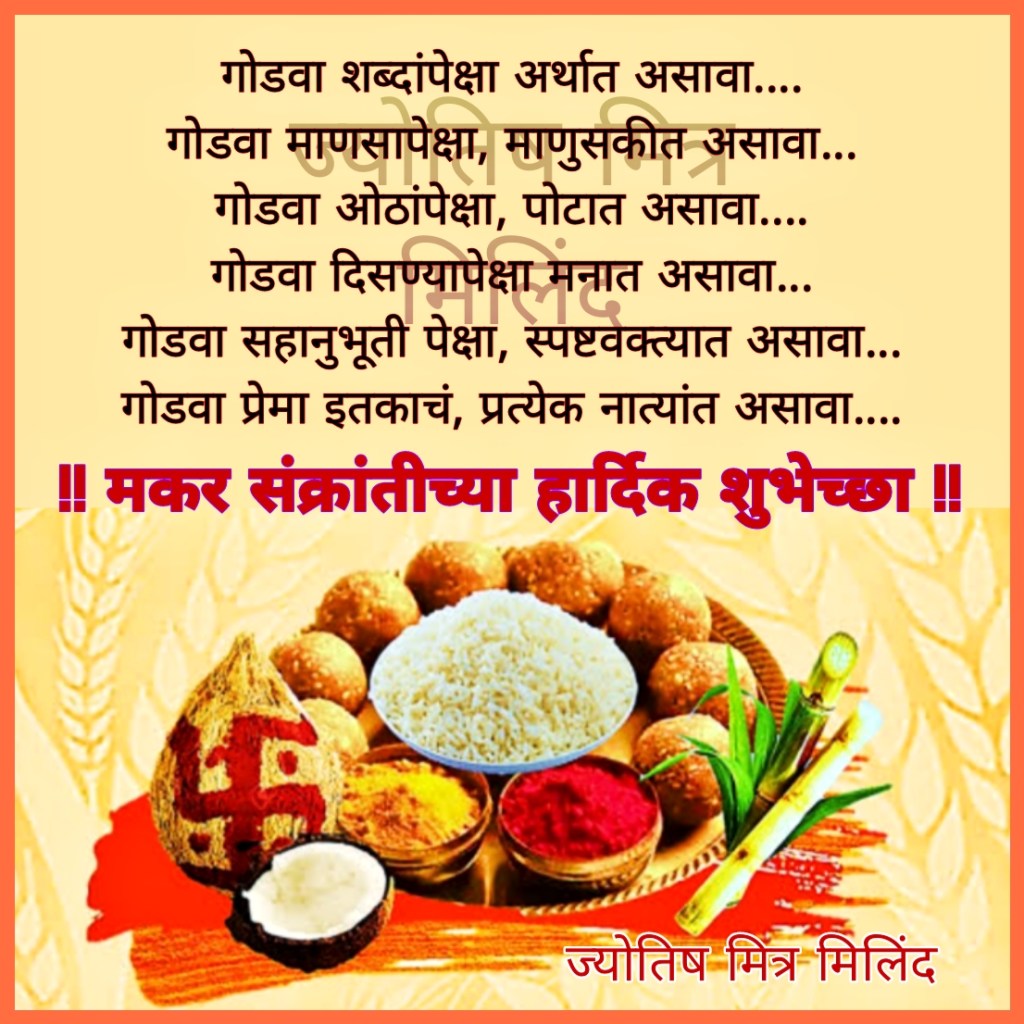 !! मकर संक्रांतीच्या हार्दिक शुभेच्छा !! Written by jyotish mitra milind ज्योतिष मित्र मिलिंद (पुणे)ज्योतिर्विंदया वाचस्पतीसंपर्क : 7058115947(सशुल्क कुंडली मार्गदर्शन) Share this: Click to share on X (Opens in new window) X Click to share on Facebook (Opens in new window) Facebook More Click to email a link to a friend (Opens in new window) Email Like Loading... Related Leave a comment Cancel reply Δ