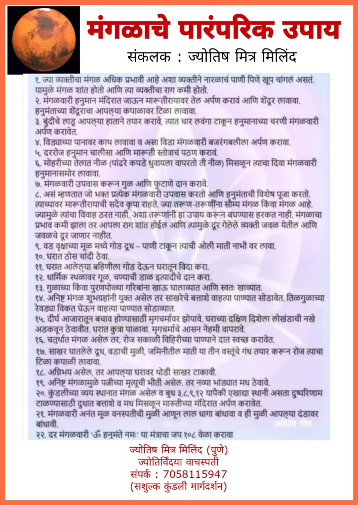 आज आपण मंगळाचे पारंपरिक उपाय पाहणार आहोत.