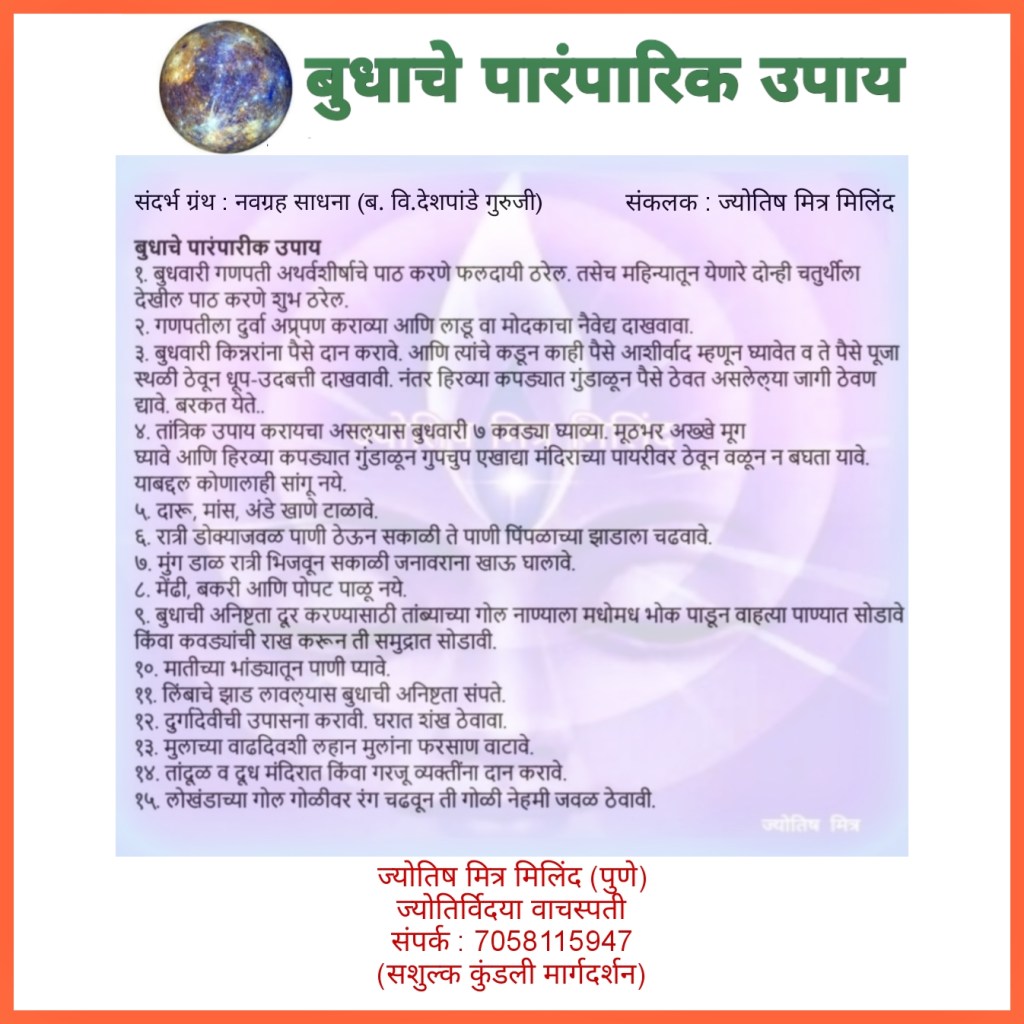 विषय : बुधाचे पारंपरिक उपाय