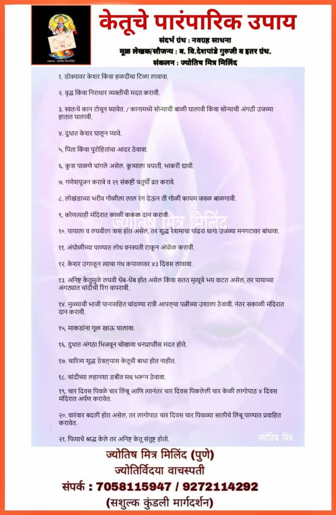 आज आपण केतूचे पारंपारिक उपाय पाहणार आहोत.