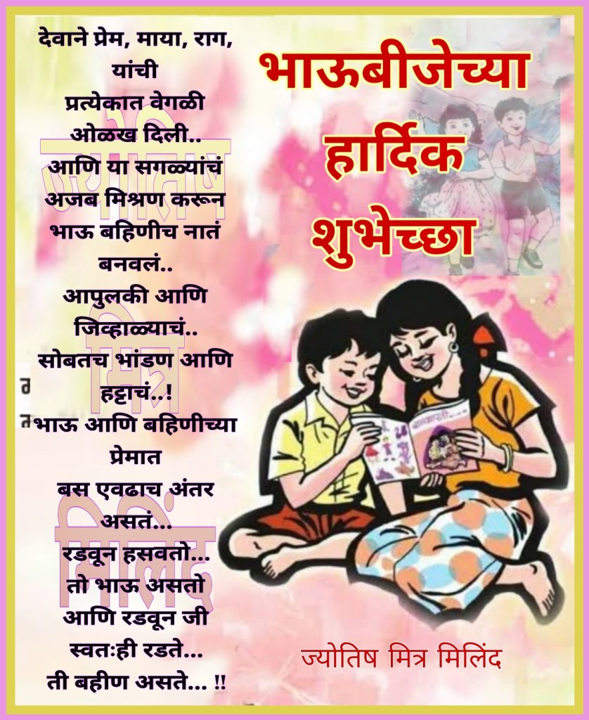 सर्वांना भाऊबीजेच्या हार्दिक शुभेच्छा 💐 Written by jyotish mitra milind ज्योतिष मित्र मिलिंद (पुणे)ज्योतिर्विदया वाचस्पतीसंपर्क : 7058115947(सशुल्क कुंडली मार्गदर्शन) . Share this: Click to share on X (Opens in new window) X Click to share on Facebook (Opens in new window) Facebook More Click to email a link to a friend (Opens in new window) Email Like Loading... Related Leave a comment Cancel reply Δ