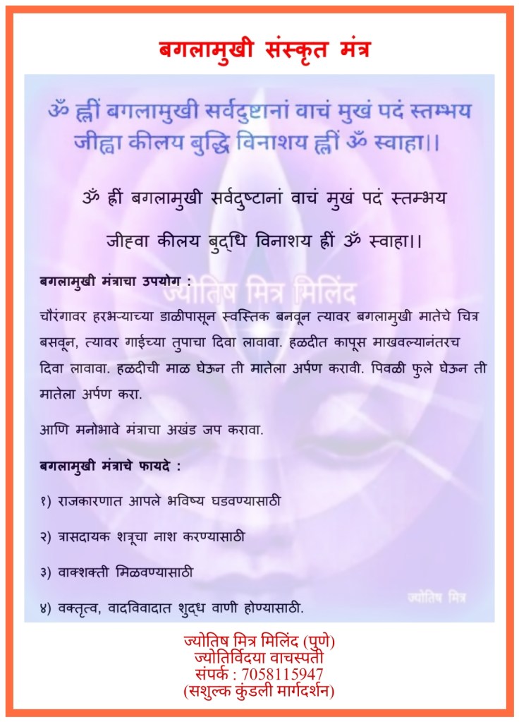 विषय : शत्रूपीडा नाश करण्यासाठी बगलामुखी मंत्र