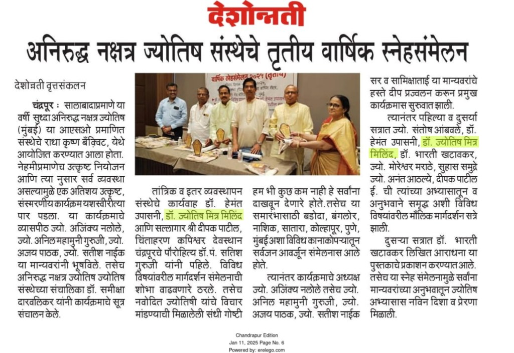असा हा सोहळा नीटनेटका, हसत खेळत ज्योतिष ज्ञान देणारा एक संस्मरणीय सोहळा ठरला.