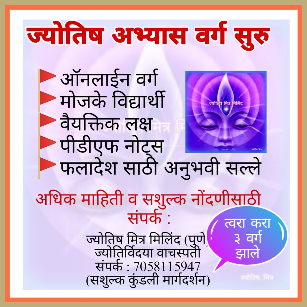 ज्योतिष मित्र मिलिंद यांचे अभ्यास वर्ग सुरु Written by jyotish mitra milind ज्योतिष मित्र मिलिंद (पुणे)ज्योतिर्विदया वाचस्पतीसंपर्क : 7058115947(सशुल्क कुंडली मार्गदर्शन) Share this: Click to share on X (Opens in new window) X Click to share on Facebook (Opens in new window) Facebook More Click to email a link to a friend (Opens in new window) Email Like Loading... Related Leave a comment Cancel reply Δ