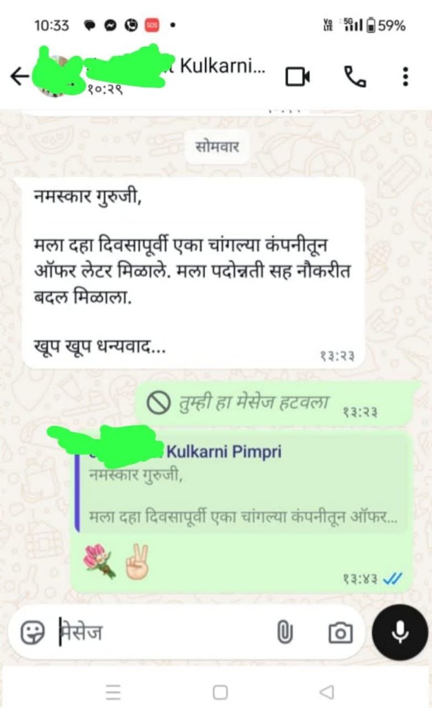 एका जातकाकडून काल आलेला फिडबॅक…🚩 😊