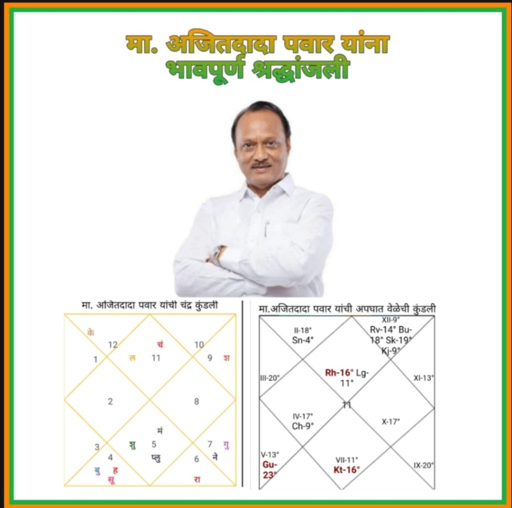 जन्मवेळ ही बरेचदा 12 ही प्रसिद्ध व्यक्तींसाठी घेतलेली असते. त्यामुळे जन्मलग्न हे चुकीचे घेतले जाऊ शकते. त्यामुळे मी आज वेगळ्या पद्धतीने त्यांचे अकस्मिक जाण्याचे उत्तर मिळते का, याचा मागोवा घ्यायचा प्रयत्न करणार आहे. हे कोणतेही भाकित नाही. माझ्या अल्प ज्ञानाप्रमाणे उत्तर शोधण्याचा केलेला एक प्रयत्न आहे. त्यामुळे ज्यांना हा प्रयत्न रुचत नसेल, त्यांनी लक्ष देऊ नये. आणि विनाकारण त्यांचा वेळ नकारात्मक लिहिण्यात घालवू नये ही नम्र विनंती