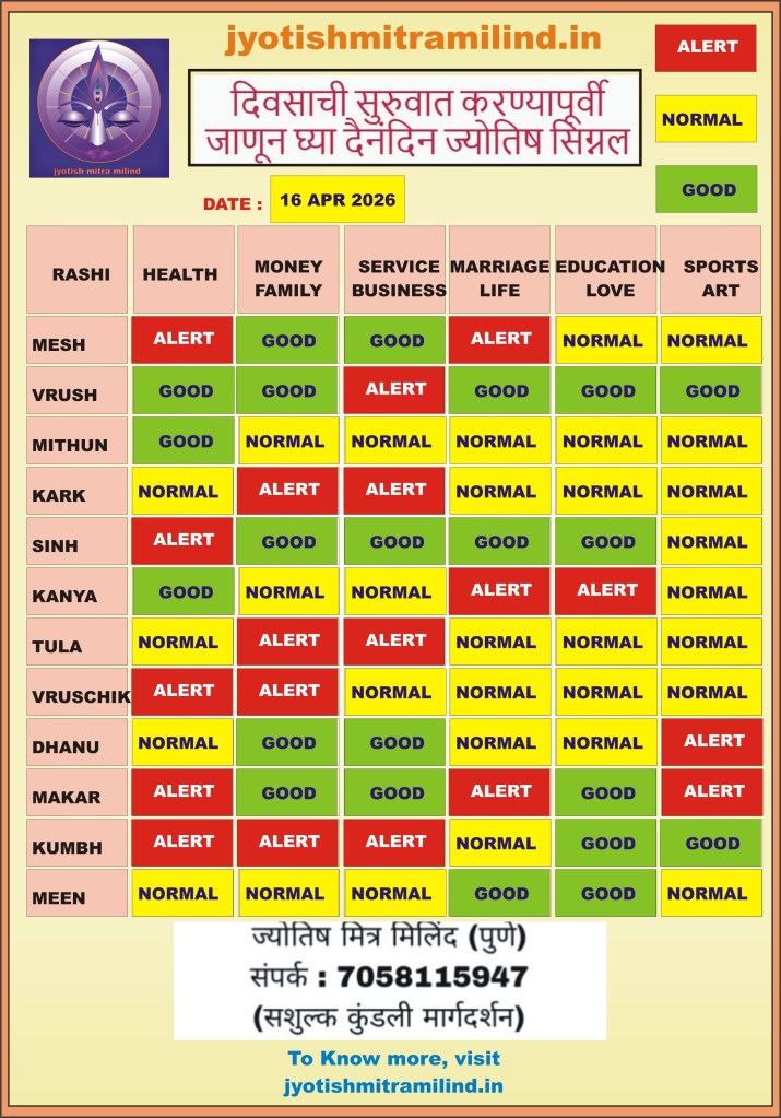 ज्योतिष सल्ला व मार्गदर्शनासाठी संपर्क : 7058115947(whatsapp only) contact@jyotishmitramilind.in jyotishmitramilind.in