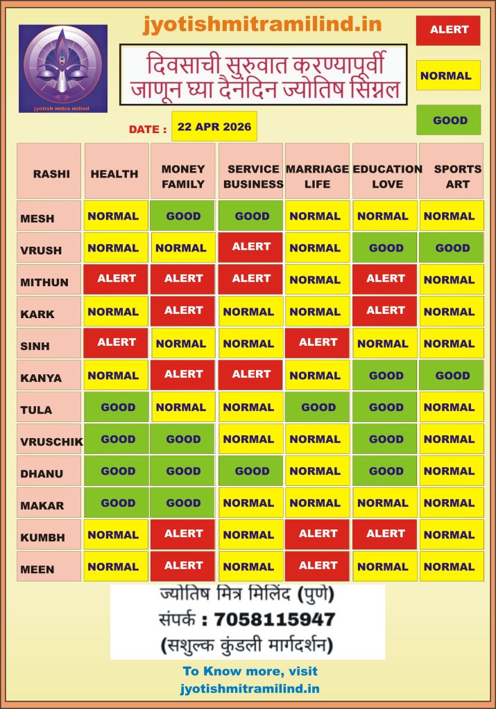 ज्योतिष सल्ला व मार्गदर्शनासाठी संपर्क : 7058115947(whatsapp only) contact@jyotishmitramilind.in jyotishmitramilind.in