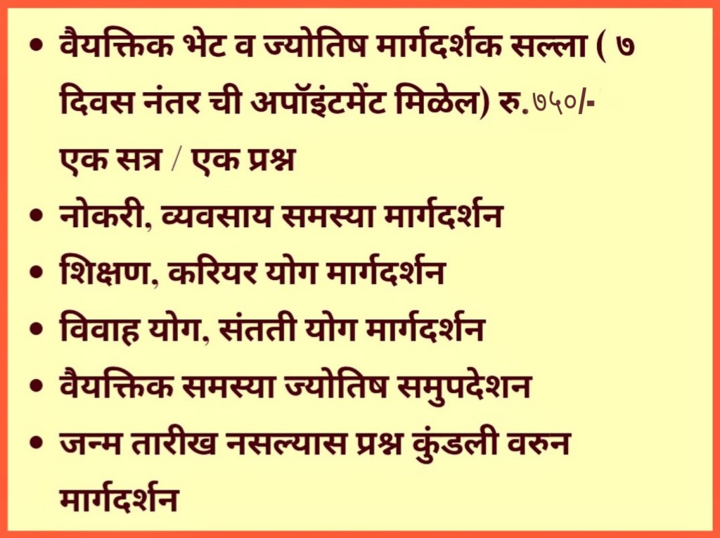 ज्योतिषमित्र सेवा ( Our Services ) ← BackThank you for your response. ✨ नाव व मोबाईल नं.(required) ई मेल(required) जन्म तारीख, जन्म वेळ, जन्म स्थान व आपला प्रश्न Contact UsSubmitting form Δ Share this: Share on X (Opens in new window) X Share on Facebook (Opens in new window) Facebook More Email a link to a friend (Opens in new window) Email Like Loading...